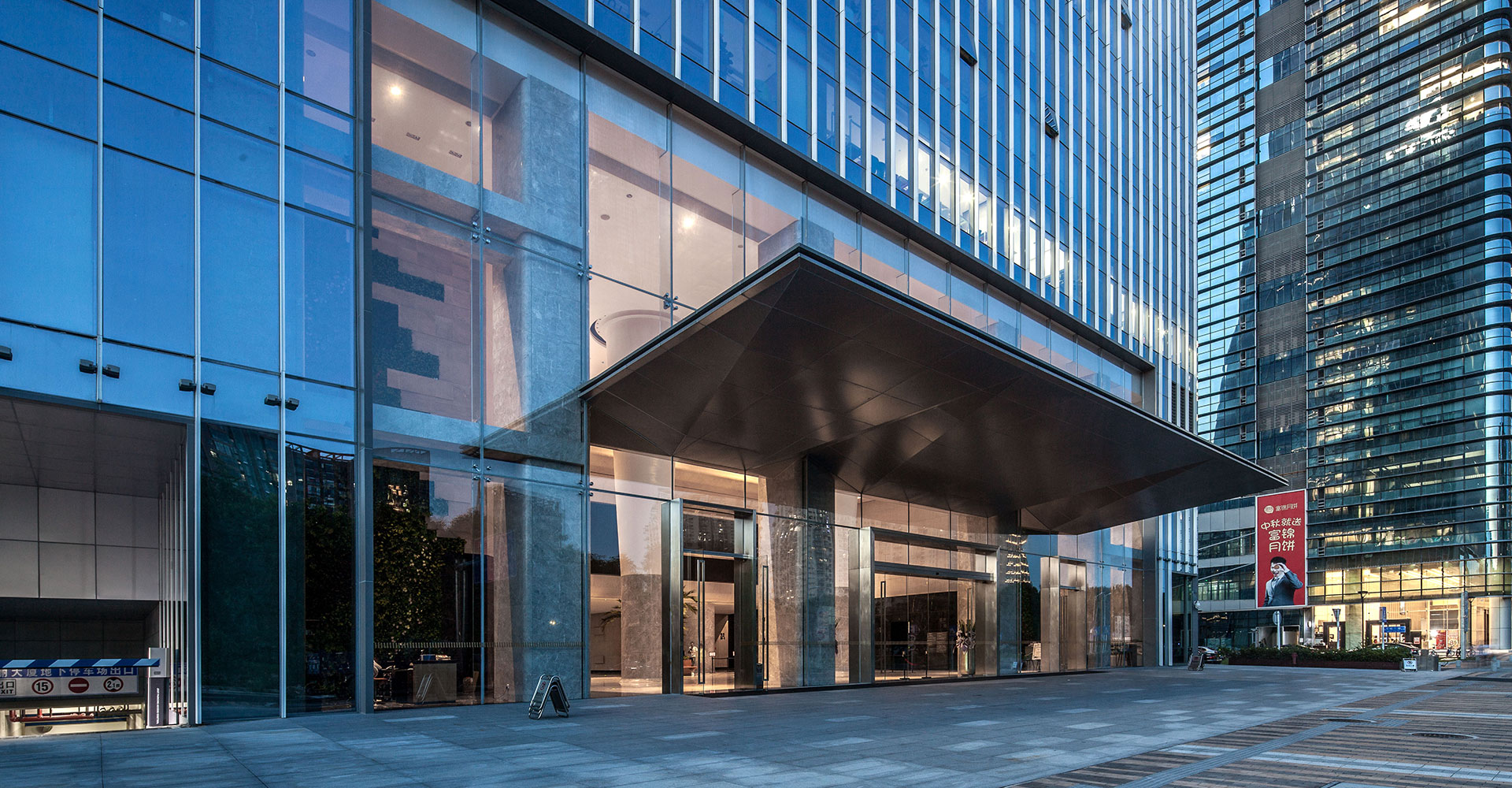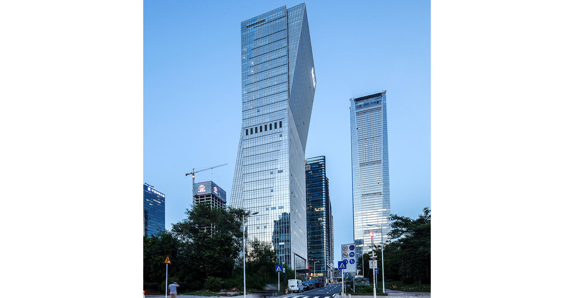 由于本地块的特殊位置,建筑造型需要有足够的标志性和可识别性,同时还应具有一定的城市尺度和现代感,以满足后海中心区的新时代,新中心区的特殊要求。倾斜的建筑造型很好的体现出建筑的时代感与流畅感,建筑物不再是高层塔楼与低层裙房的传统关系,而是将裙房与塔楼结合在一起形成更加整体的体型关系,更好的体现高层建筑的整体感,为后海中心区增加活力。