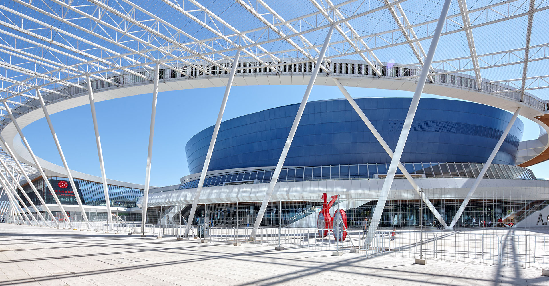 强调多个单体的体育建筑从功能到形式上的整合,同时将场馆间的相对消极的空间通过半室外化的空间营造,尝试变为积极的活动空间,并与城市空间相对接。在后期实际运营期间,功能一体化为使用带来了很大的便利、空间一体化带来了鲜明而有力的建筑形态、建筑虚空成为了提升使用者感受的“亮点空间”。
