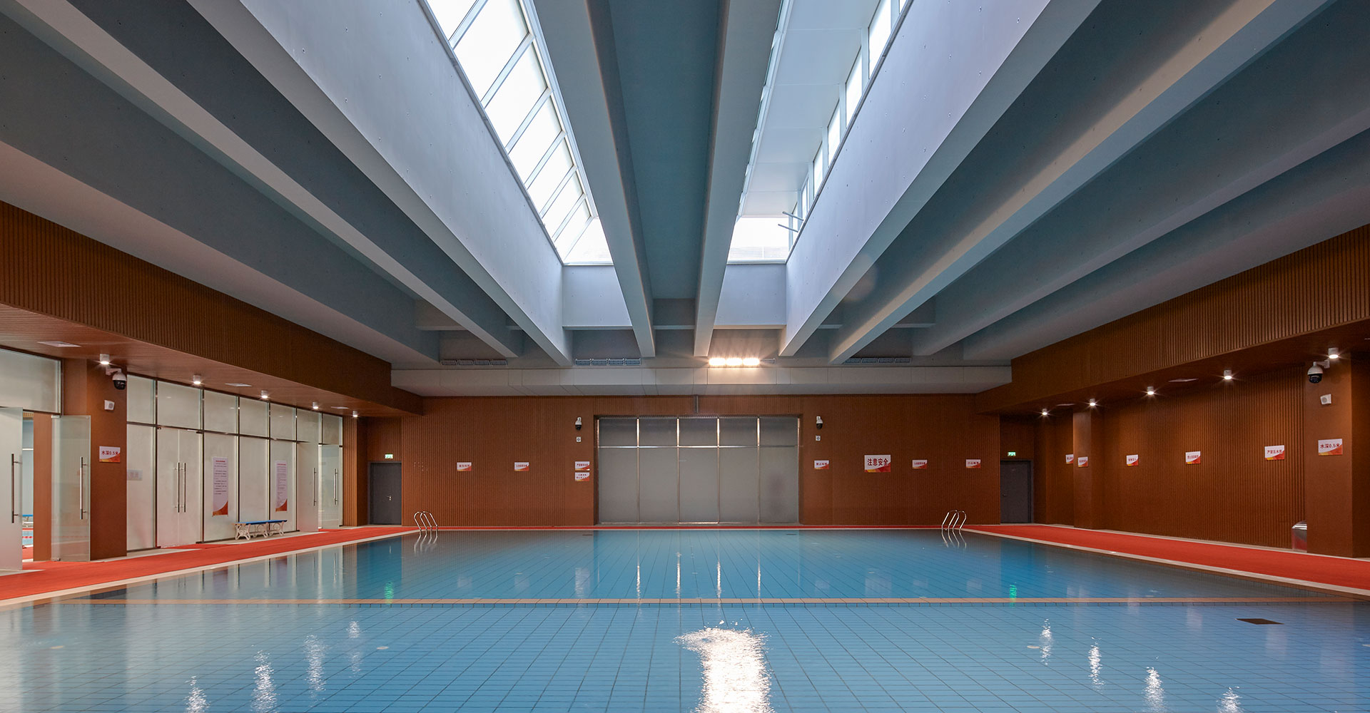 采用采光筒与吸声垂片的搭配使用,即保证屋面防水可靠性又形成了室内丰富光影效果,