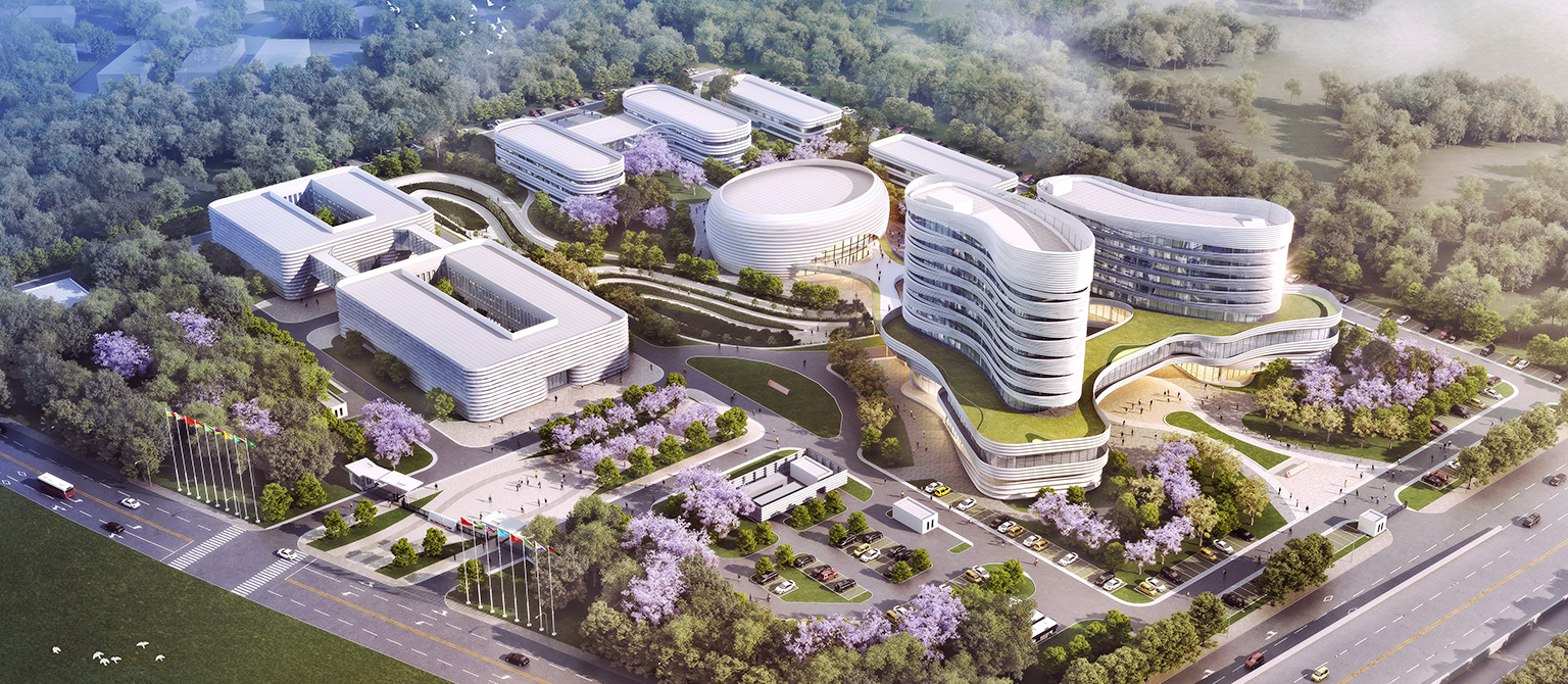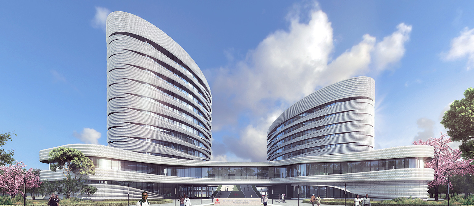 援非盟非洲疾病预防控制中心总部(一期)项目位于埃塞俄比亚首都亚的斯亚贝巴市西南方向的“非洲村”,距非盟总部约10公里,距机场10公里,距离市中心约30分钟车程。建设用地位于亚的斯亚贝巴市西环路和南环路之间,整个用地约为长方形,总用地面积约为9公顷,一期项目建设用地约5.35公顷。