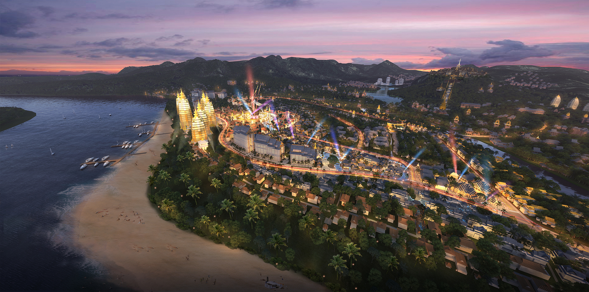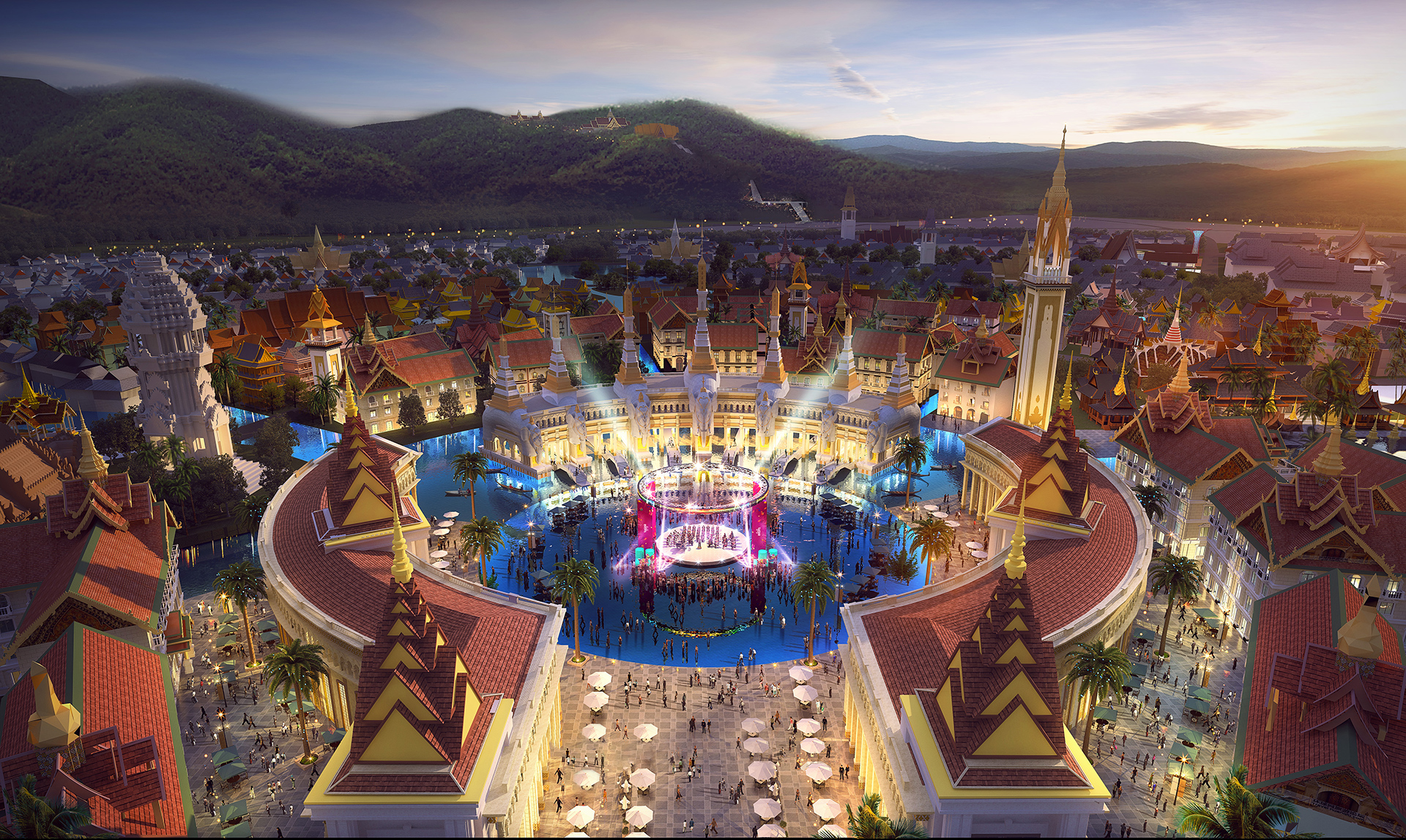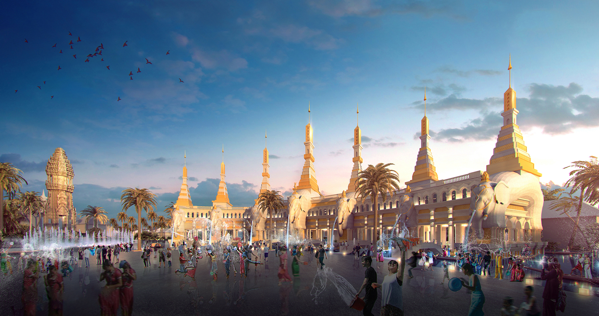 在建筑风貌上,本项目紧扣傣泰文明主题,对六国传统与现代、民俗与宗教建筑风貌进行深入研究,并将其分类运用在适当的建筑类型中,形成以水连接,多元融合的彩虹国度景象。添加请在此处填写