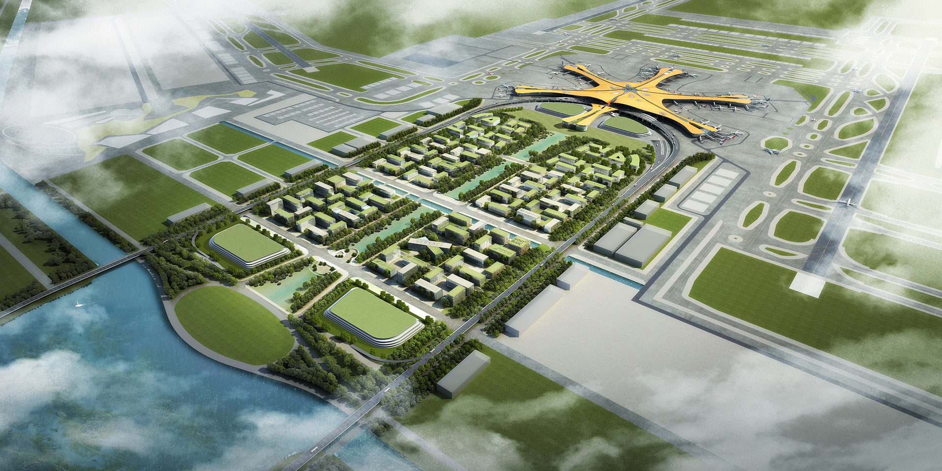 规划将近远期相结合,提高机场区域土地的利用效率,使机场与城市有机结合,保障机场、铁路的人流、货流运输能力和安全,做到系统清晰、运行有序、边界明确、合理分区。 规划从整体城市空间角度出发,对机场航站楼前核心区的交通流线、开放空间、整体空间形态、街区模式等进行研究,并对航站楼前的中央景观带、地下空间以及主要功能区展开专题研究。