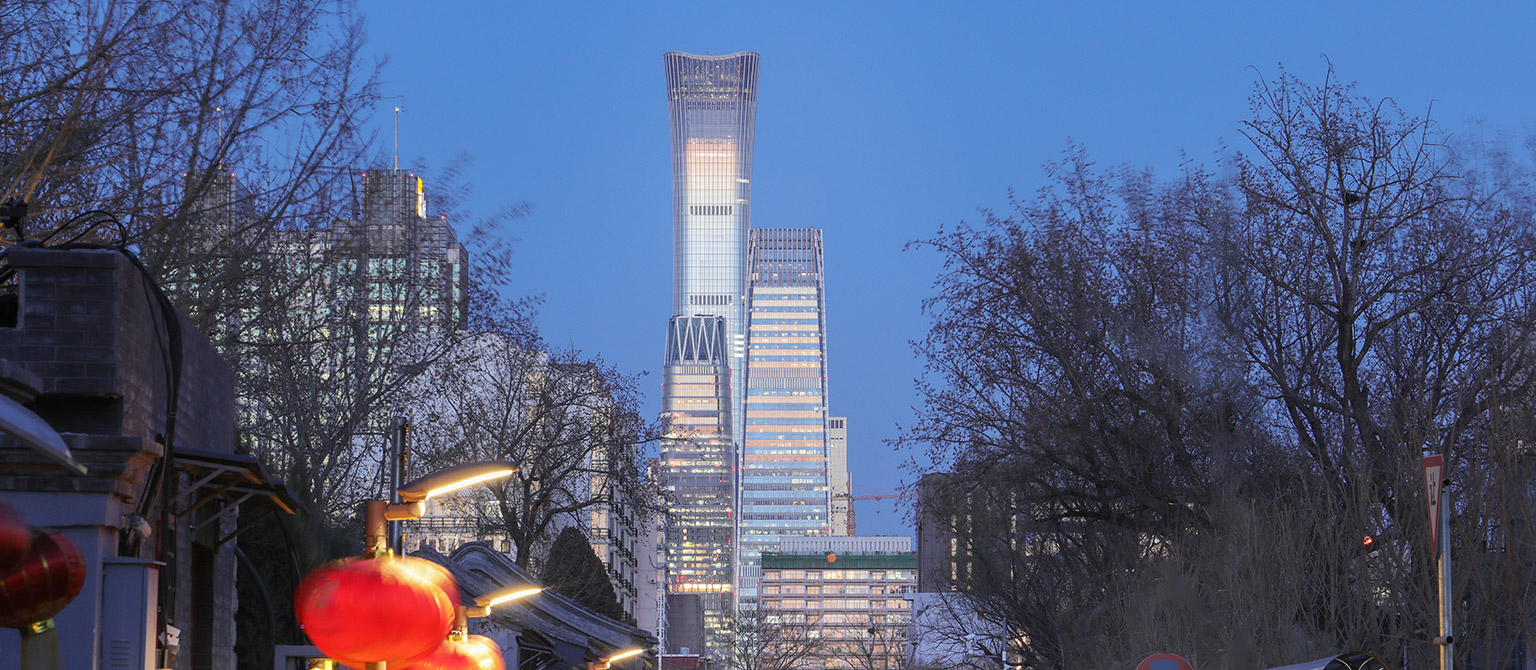 北京CBD核心区Z15地块项目,又名“中信大厦”。地上建筑面积35万平方米,地下8.7万平方米,地上108层,地下7层;高度达到528米。塔楼造型灵感来源于中国传统礼器“尊”,具有收腰的身形特点。这种形体下,建筑在较高处楼层的面积适当增大,从而获得宝贵的高空体验。