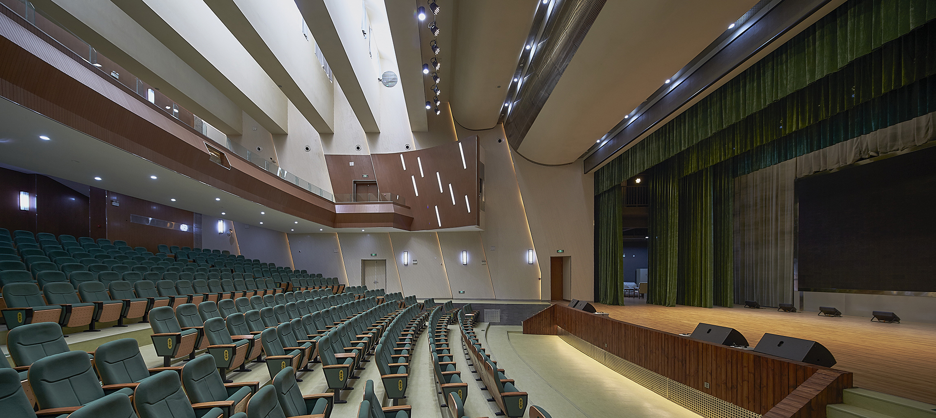 为满足建筑功能的需要(如阶梯教室、人行坡道等处),结构专业按需在局部位置设置剪力墙,结构形式为钢筋混凝土框架-剪力墙结构。上部结构部分:1)剪力墙布置在楼梯间四角及其弧形墙、卫生间局部位置及3轴、8轴横墙处,既不影响建筑功能,又满足结构抗震的需要,在楼层处剪力墙内设有暗梁。2)3~5层6~8轴间建筑在楼面开有较大洞口,结构专业在计算中采用弹性板假定计算楼板配筋,大洞口周边楼板厚度为150mm,楼板双层双向配筋,每层每个方向配筋率不小于0.25%,洞口周边梁配置有抗扭钢筋以加强抗扭能力。3)人行坡道处按建筑功能要求布置有斜板及剪力墙,在设计中坡道板厚度取为100mm,坡道周边剪力墙厚度取为250mm。为减少坡道整体刚度对结构计算的影响,依据建筑洞口在墙体中部开洞,减小坡道间整体刚度,使得结构扭转位移比计算结果满足规范要求的1.4以内。基础部分:1)场地孔口高程在1521.99~1533.39m之间,场地地层分为6个主层,主要为填土层、卵石层、细砂层,勘察期间地下水水位埋深0.1-14.6米,相应水位标高1520.79~1523.88米。2)基础采用柱下桩基础及局部桩筏基础,桩型为机械成孔灌注桩,桩基持力层为卵石层。灌注桩在施工前应进行单桩竖向抗压静载实验。灌注桩施工完毕后,按《建筑基桩检测技术规范》 (JGJ 106-2003)相关条文规定进行单桩承载力和桩身完整性抽样检测。3)由于本建筑场地范围内存在采砂坑,并回填大量碎石、粉土、砖块等建筑垃圾形成杂填土层,在基础开挖时应全部挖除。挖除后在基坑范围用素土回填至室外标高,回填土内不得含有块状粘土或砂质粉土,也不得含有石块、碎砖、灰渣、有机物。场地回填施工完毕后即可进行桩基的施工。