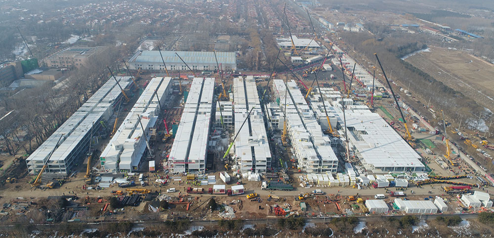 在小汤山项目工程现场,3层的集装箱建筑正在紧锣密鼓地建设之中,能够满足所有床位的需求。包括食堂、换热站、污水处理站、洗消间等在内的附属设施,将为医院提供完善的配套服务。B区康复中心改建项目已基本完成,将提供先进的负压隔离病房。