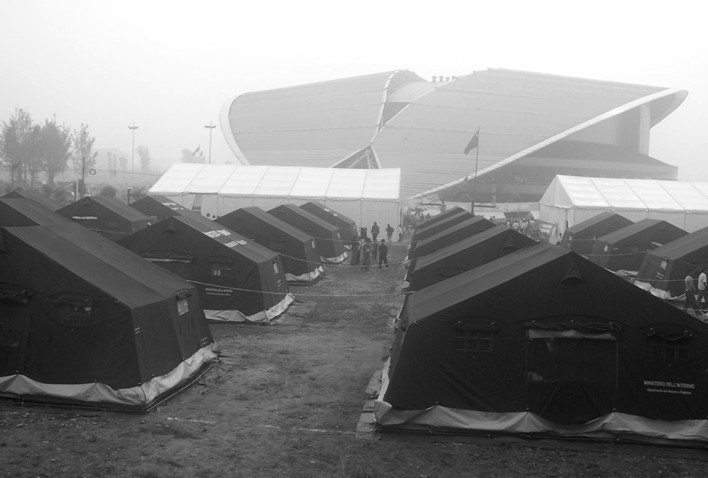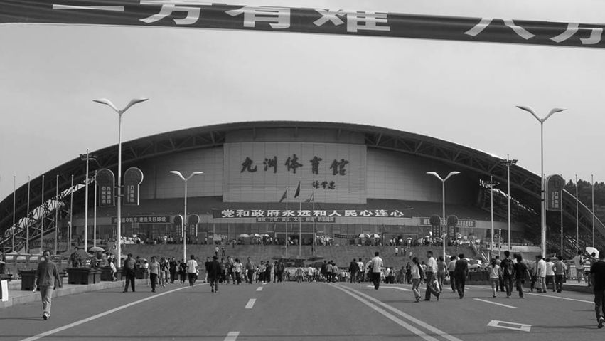 2008年5月12日中国汶川发生特大地震,无数建筑倒塌,满目疮痍,几十万人无家可归。位于四川省绵阳市的九洲体院馆在大震中屹立不倒,成为了受灾群众的临时安置场所,在随后上万次余震中,体育馆主体结构完好,先后守护受灾群众10万余人,被灾民誉为大震中的“生命绿洲”。