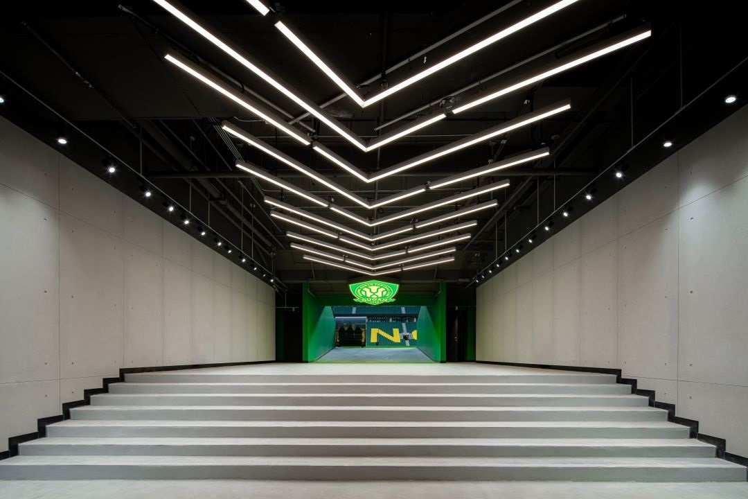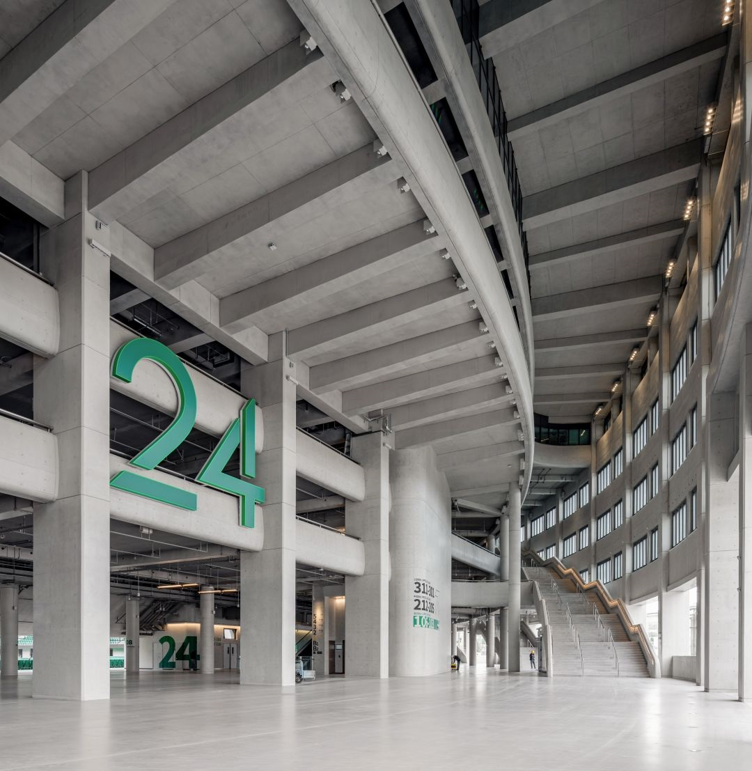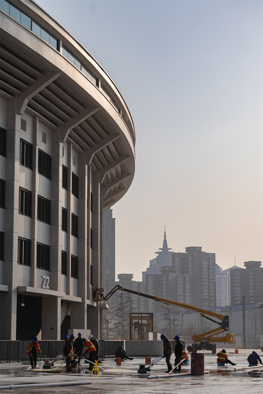传统外观体首先体现在总体规划方面,完全建成的新工体将恢复1959年建成时疏朗的城市空间形态。新增大面积绿化空间和提升整治后的南部水体空间为市民提供高标准的体育活动、休憩娱乐的优质室外环境;为城市提供新的体育、文化、商业综合空间,打造大三里屯商业圈,搭建国际体育文化科技交流平台。从建筑单体角度看,新工体不是原封不动的照搬老工体的样式,而是在形似的基调下,通过新理念、新材料、新技术、新功能赋予工体崭新的持久生命力。清水混凝土工艺的使用,完美呼应了老工体水泥砂浆外观饰面层简约、质朴的调性,而清水混凝土材料本身的纹路、质感、色彩和实施工艺带来全新的视觉效果,于平实处尽显力度美和精致的细节。