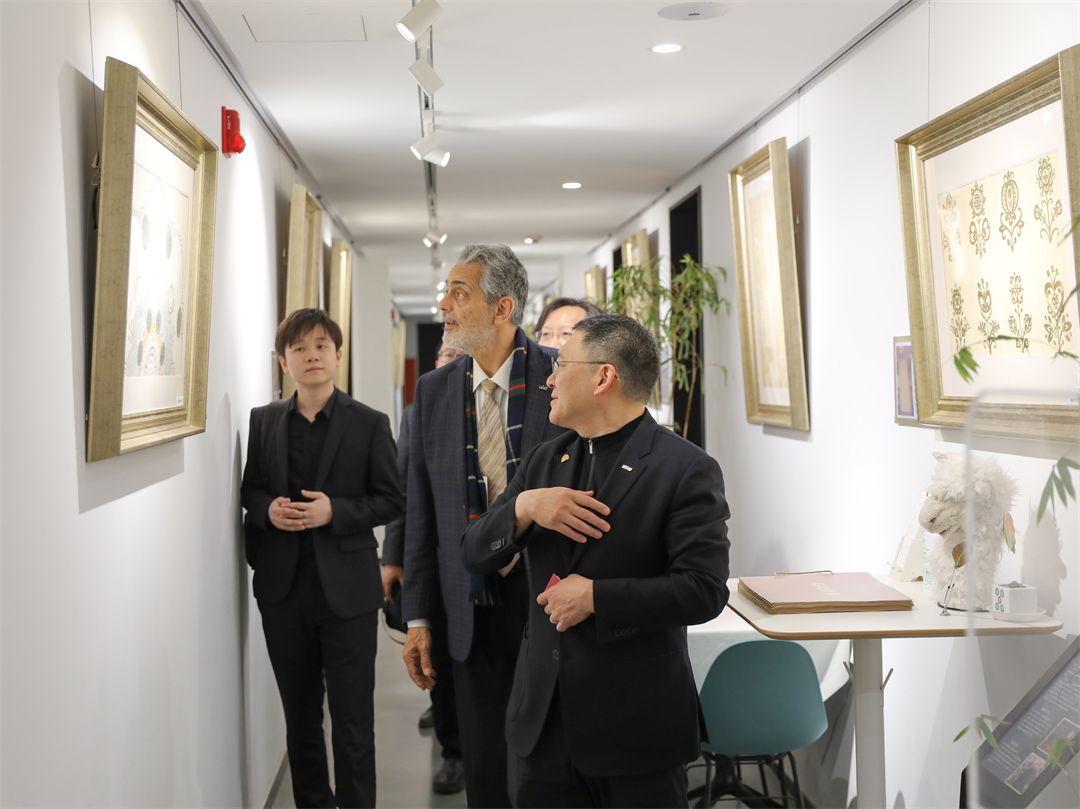 塞义夫首先参观了礼士书房,了解了北京建院悠久的历史,以及北京建院在图书收藏、阅读交流、文化展示等方面的成果;随后来到B座首层展示厅,参观了北京建院近年来的优秀工程,了解了北京建院在建筑规划设计、建筑遗址保护和城市更新领域的成就。