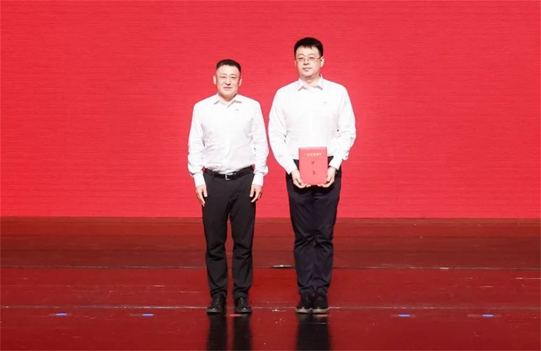公司领导向受表彰的先进集体和先进个人代表颁发奖杯、奖章和证书