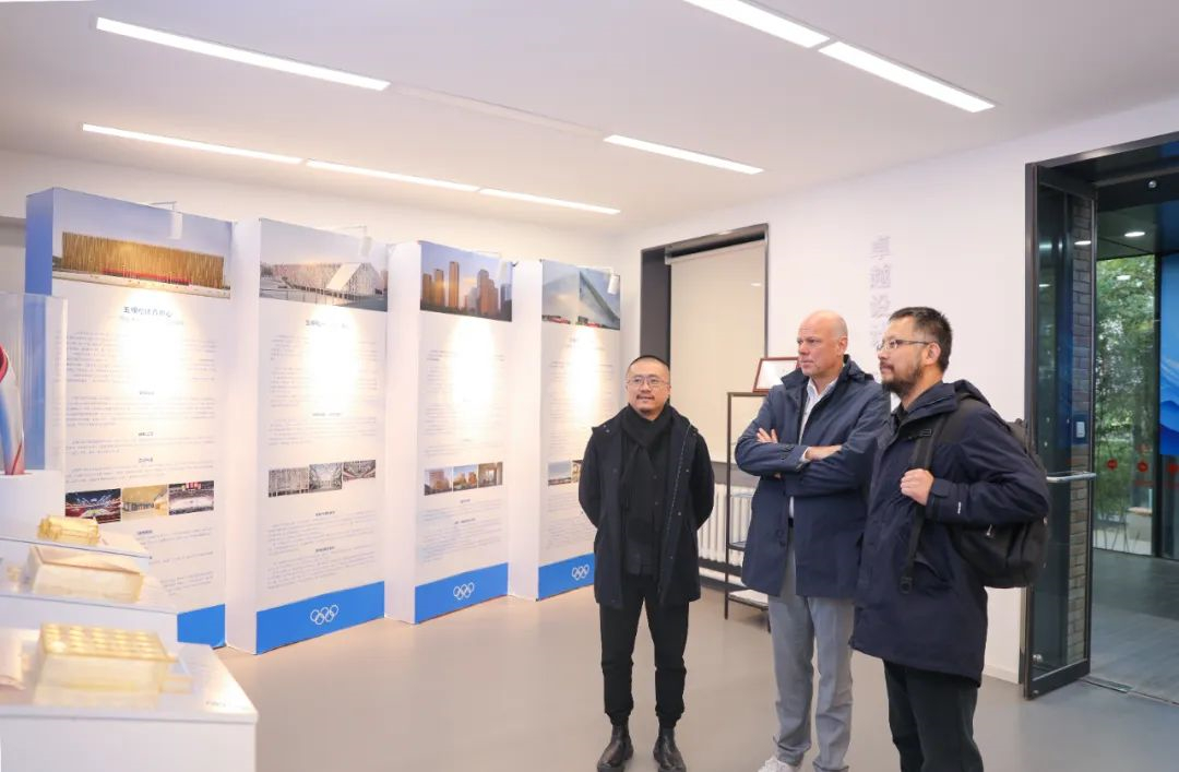 随后,Burkhard Junker一行参观了北京建院双奥主题展览,了解了北京建院参与两次北京奥运的经历和取得的丰硕成果,以及北京建院参与设计的奥运项目作品。Burkhard Junker对北京建院为北京双奥之城建设作出的贡献,表示高度认可和赞扬。