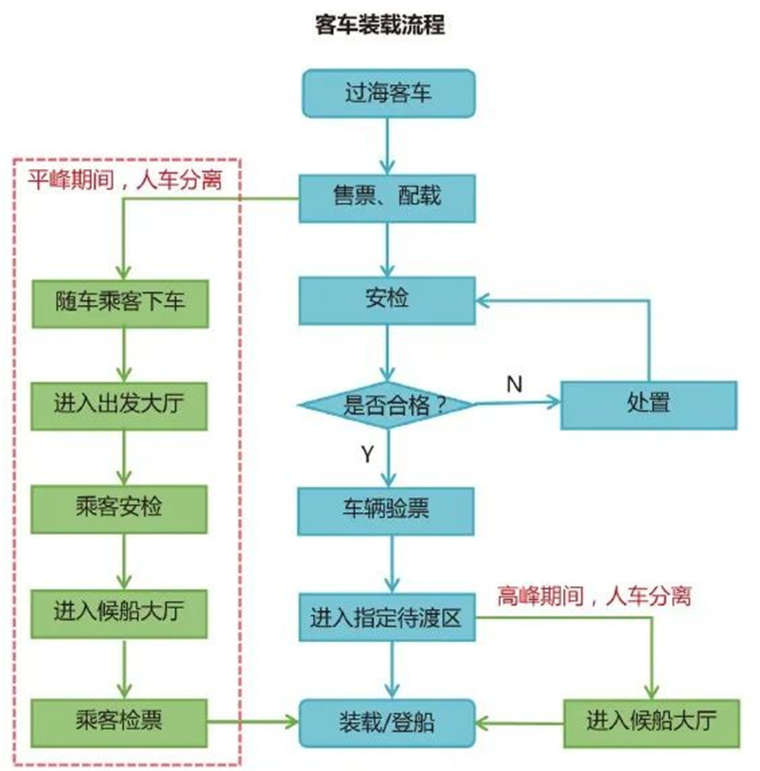 在场地空间条件有限的情况下,规划从竖向空间角度寻求破题路径。地面层留给客车货车检查待渡,二层及以上架空建设航站楼,供旅客通关侯船,人车分层分流。