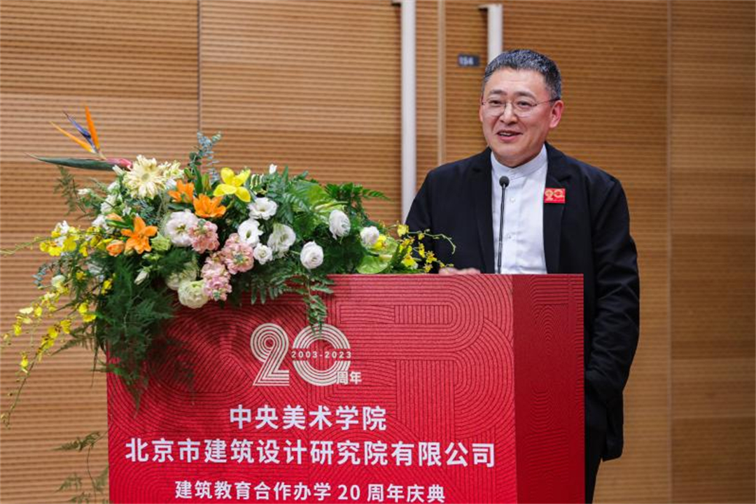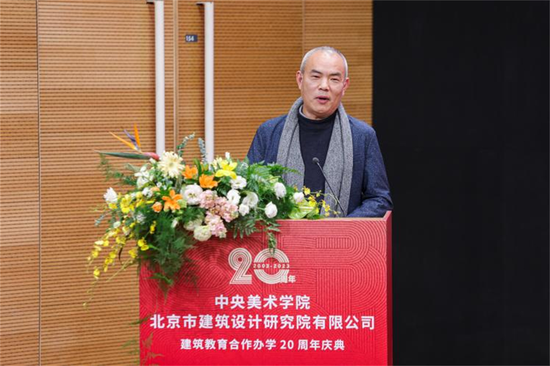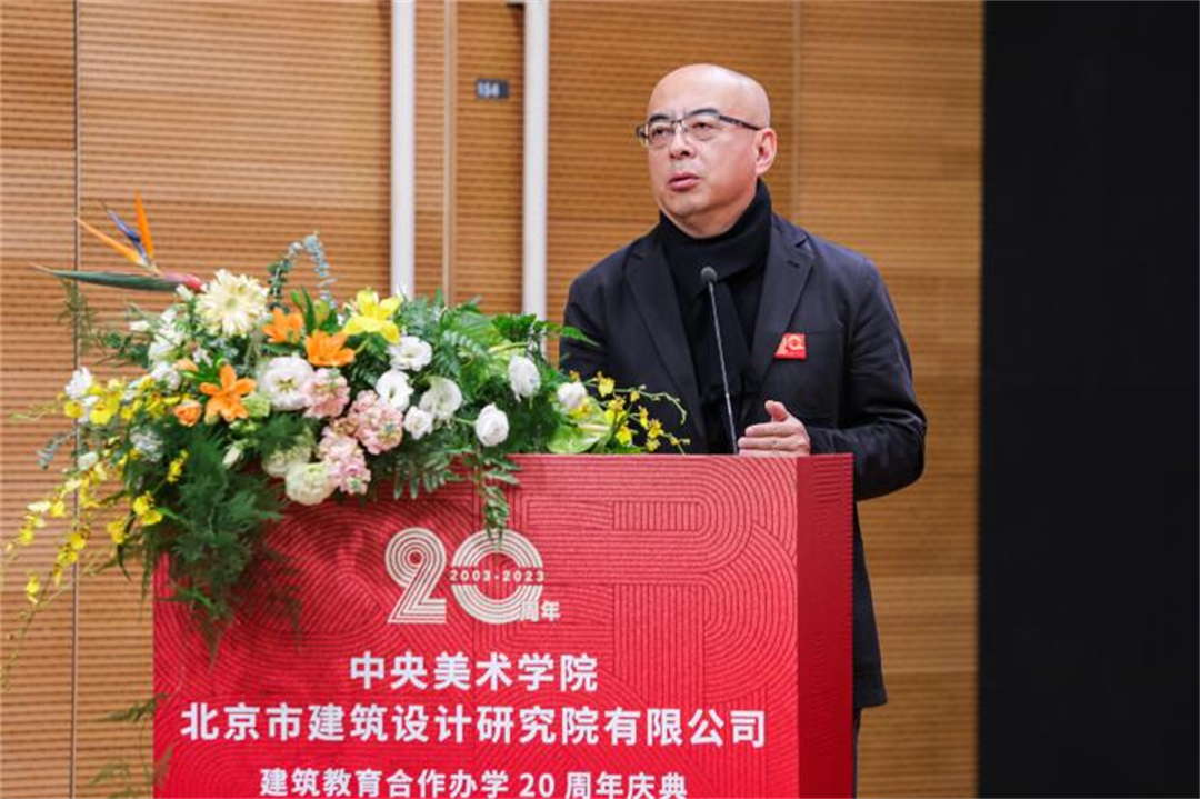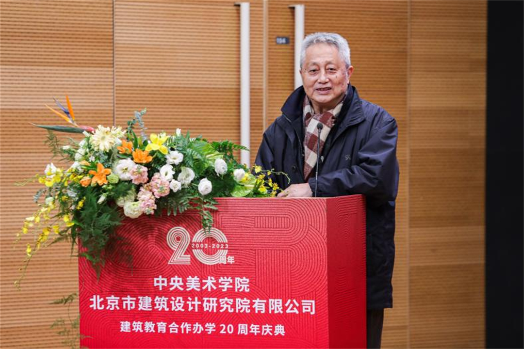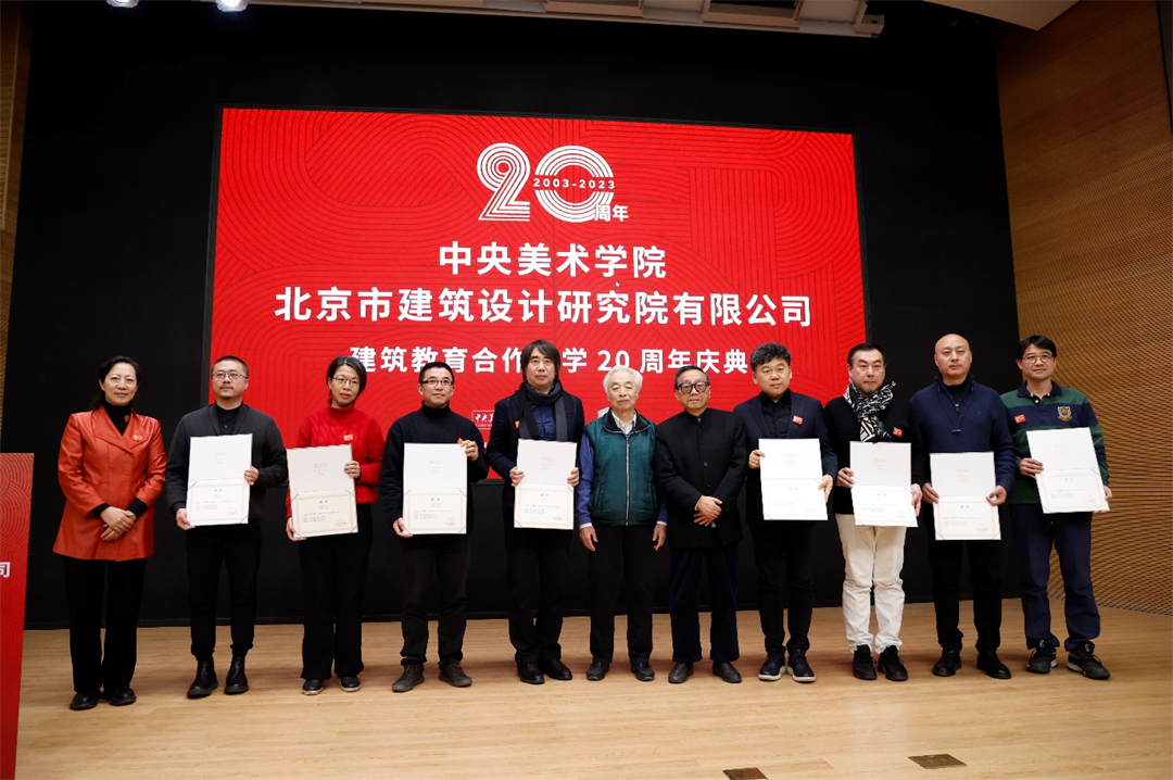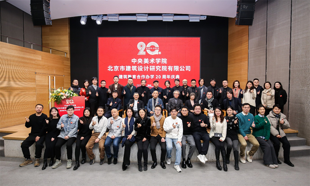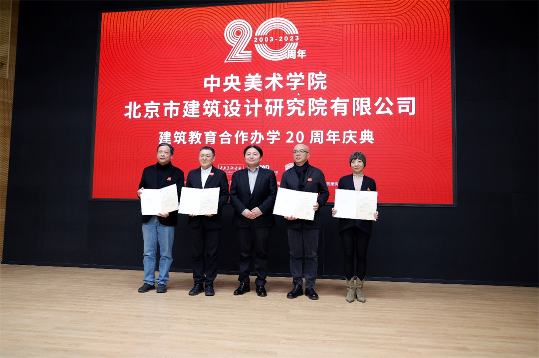 2023年12月22日,中央美术学院与北京市建筑设计研究院股份有限公司建筑教育合作办学20周年庆典在中央美术学院举办。中国工程院院士、北京建院顾问总建筑师马国馨,北京建院党委书记、董事长、总建筑师徐全胜,北京建院副总经理李中国,北京建院副总经理、副总建筑师谢欣,朱小地工作室主持建筑师朱小地,中央美术学院党委书记高洪,院长林茂,党委副书记王晓琳,副院长吕品晶,建筑学院老先生张宝玮、韩光煦,以及建筑学院师生、优秀师父代表、青年建筑师参加活动,活动由中央美术学院建筑学院院长朱锫主持。