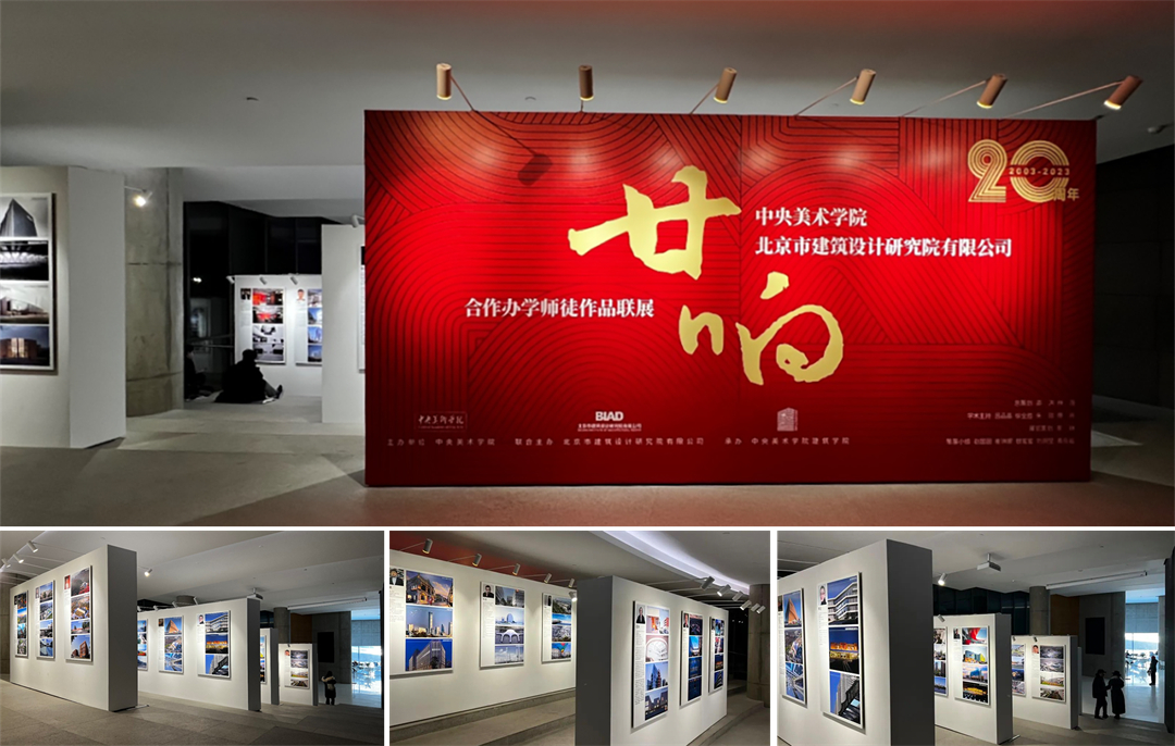 《廿响——中央美术学院与北京建院合作办学师徒作品联展》在中央美术学院美术馆同期开幕,展览展出了46位中央美院和北京建院师徒共同创作的建筑作品,展览将持续至2024年1月1日。