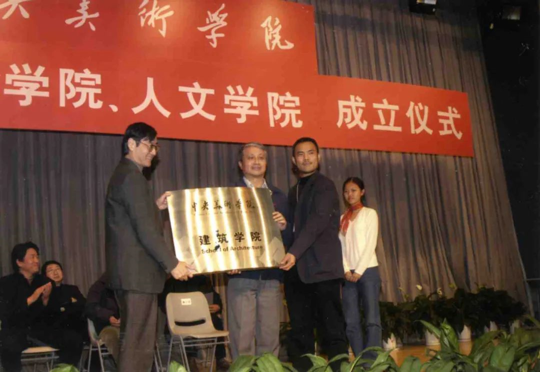 2003年10月28日,时任中央美术学院院长潘公凯在建筑学院成立仪式上为建筑学院名誉院长马国馨院士和副院长吕品晶授牌