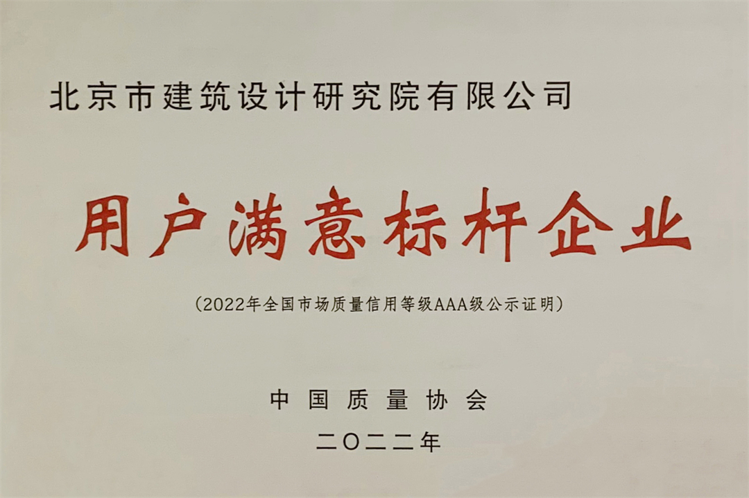 2023“3·15”用户满意经营承诺倡议活动暨2022年满意中国大会成功举办。北京建院被评定为全国市场质量信用AAA(用户满意标杆)级企业,成为目前全国唯一一家AAA级民用建筑设计企业。