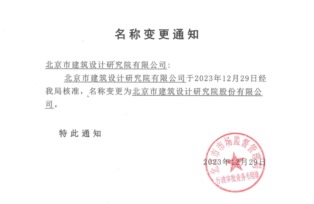 2023年,北京建院在北京产权交易所完成公开挂牌增资引战,募资12.75亿元,成功引入以航天投资控股有限公司为代表九家战略投资者,完成混合所有制改革,完成股份公司设立的各项工作。经公司股东大会通过,经北京市市场监督管理局核准,12月29日起,北京市建筑设计研究院有限公司正式更名为“北京市建筑设计研究院股份有限公司”,完成股份制改革。