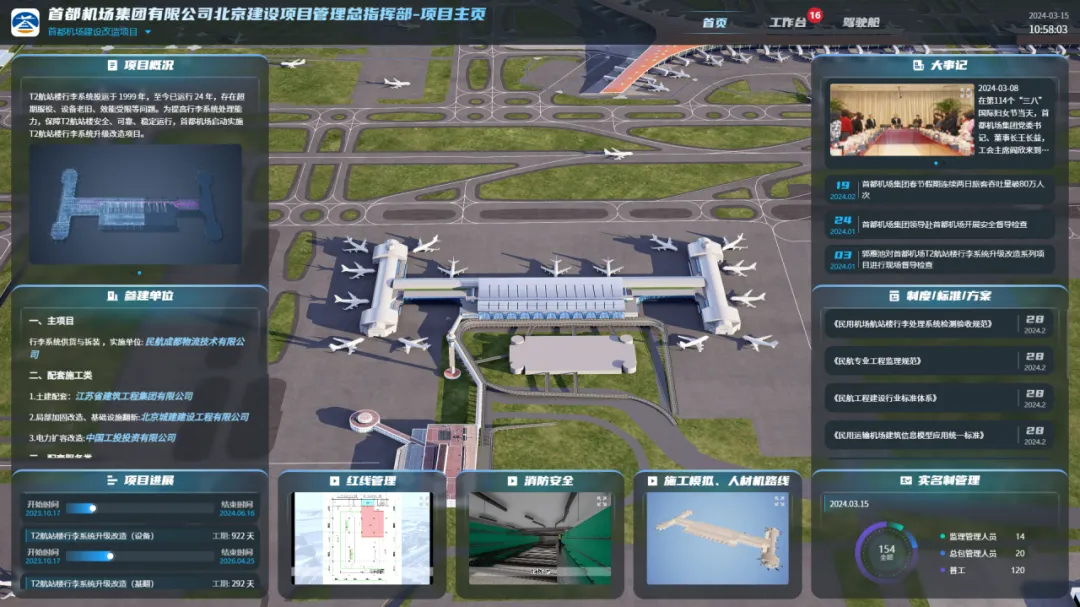 数字科技研究院和建院科技作为平台建设单位,负责首都机场集团有限公司北京建设项目管理总指挥部(以下简称“总指挥部”)智慧管理协同平台项目的研发。该项目为响应国家“十四五”规划、民航行业发展战略以及首都机场集团的要求,深入贯彻集团推行的机场建设新型组织模式变革,搭建智慧管理协同平台。平台以BIM技术为核心,实现项目全参与方、全生命周期、全要素管控协同,包括项目建设驾驶舱、招采管理、资金管理、计划进度管理、设计管理、数字化交付等功能,为建设管理提质增效充分赋能,具有首创性及重要意义。