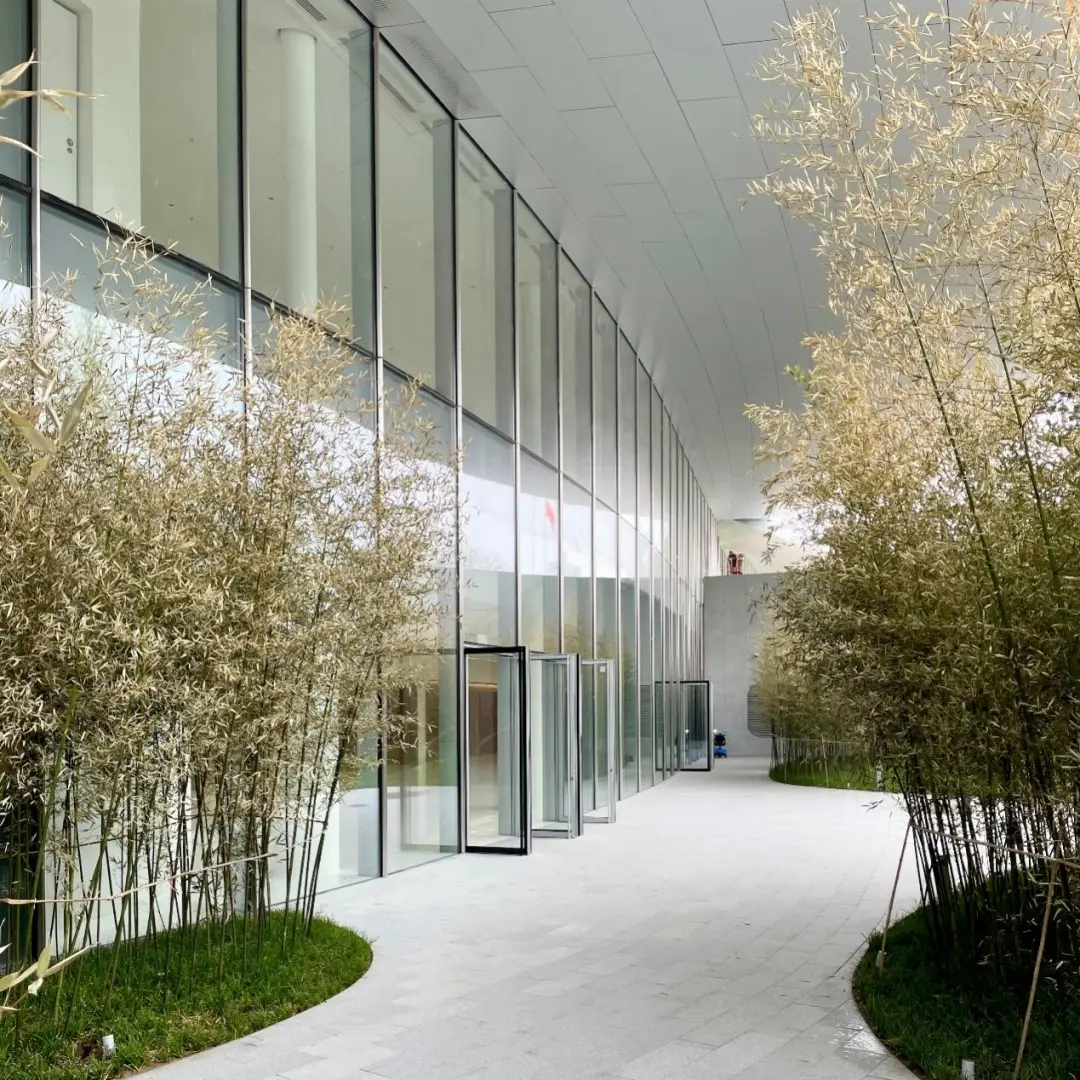 顺应国家双碳理念,对高能耗会议建筑实现绿色低碳,实现绿建三星设计标准。对可再生能源进行复合系统的使用,采用地源热泵+空气源热泵的复合能源方案,实现建筑运行的高效节能。多维度的节能措施降低传热系数,实现被动节能减碳。场地海绵技术措施的全面利用,增强吸水、蓄水、净水、释水的能力,减少雨水排放量。完美诠释“森林中的会议中心”的理念,保留场地内古树,承载历史古韵,演绎自然新生。