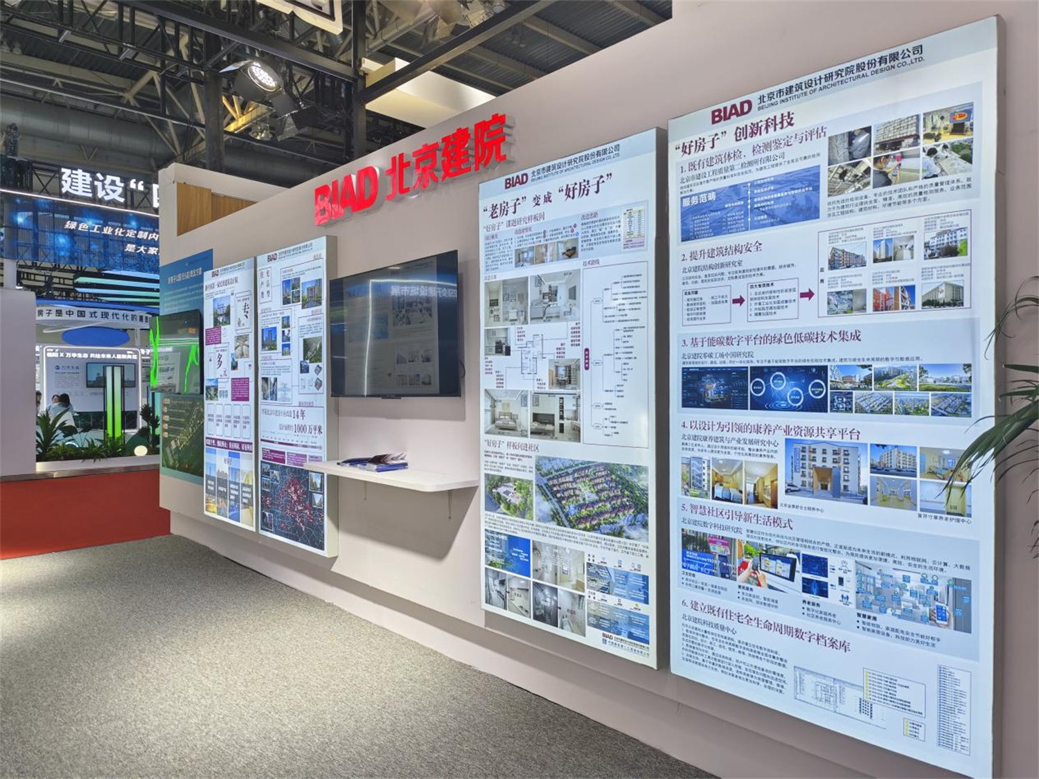 北京建院应邀参加开幕启动仪式和“好房子”科技创新交流会,同时在“新科技、新动能、好房子产业链”展区开设“老房子变好房子”主题展览,充分展示北京建院深耕既有住宅改造领域十四载的深厚实力和卓越成就。