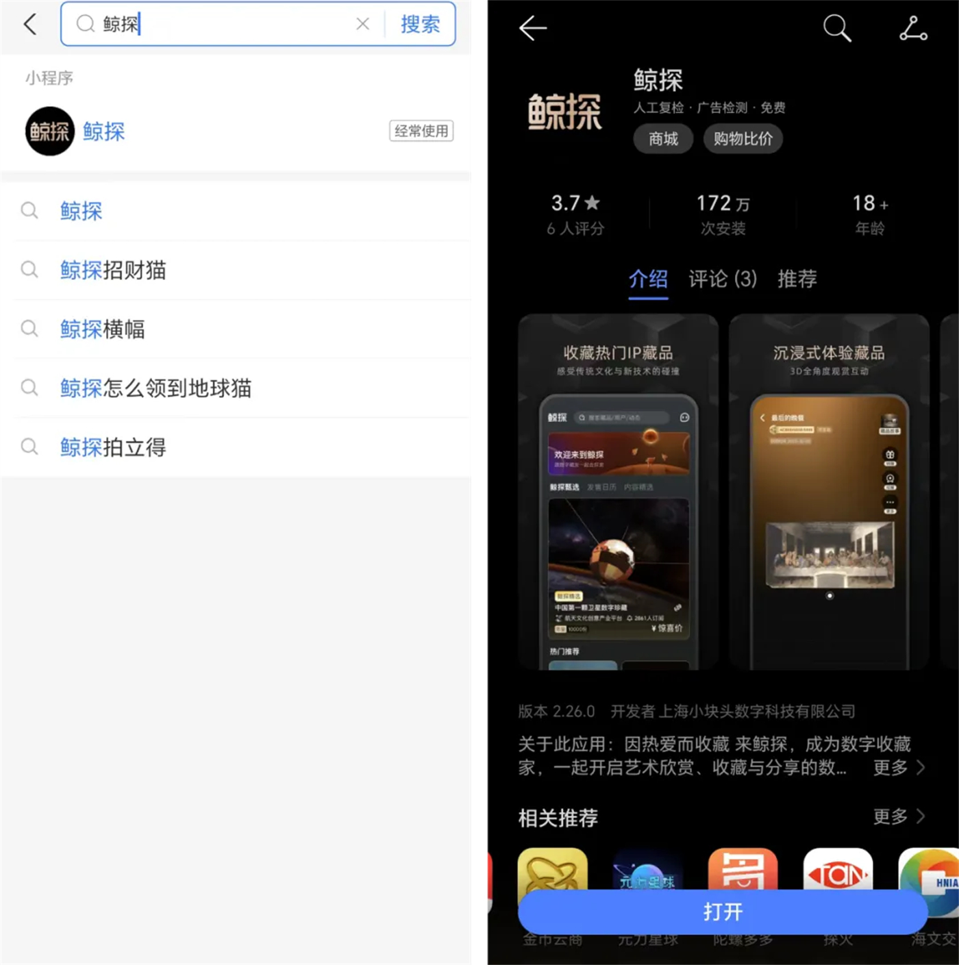 在应用商店搜索“鲸探”,下载鲸探APP;或在支付宝搜索“鲸探”,进入鲸探小程序。