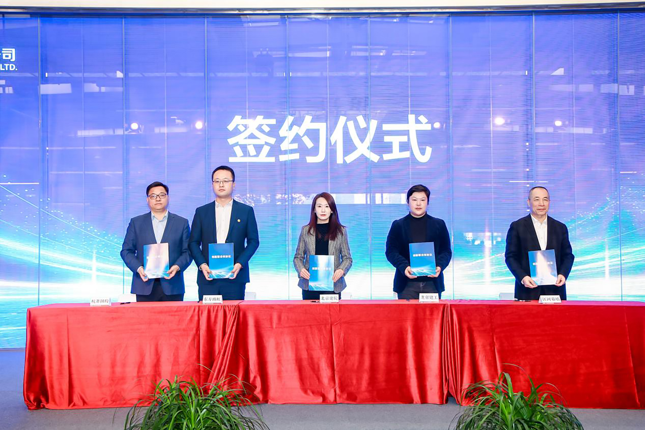 在2035未来办公原型建筑发布会上,未来科创公司副总经理郭少山发布了《科技创新为导向的新建设模式》,未来设计院执行院长高博发布了《建筑科创体系2035》,北京建工集团科技质量部副部长杨震卿发布了《数据驱动智能建造》,建筑科技创研室主任王健发布了《建筑科创系列产品发布》。随后,北京建院、北京建工、东方雨虹、江河幕墙、杭萧钢构签署创新联合体协议。