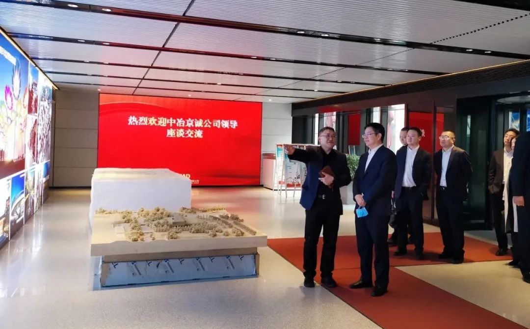 中冶京诚公司的领导一行首先来到B座办公楼一层展示厅,参观了近年来北京建院的优秀工程展示。