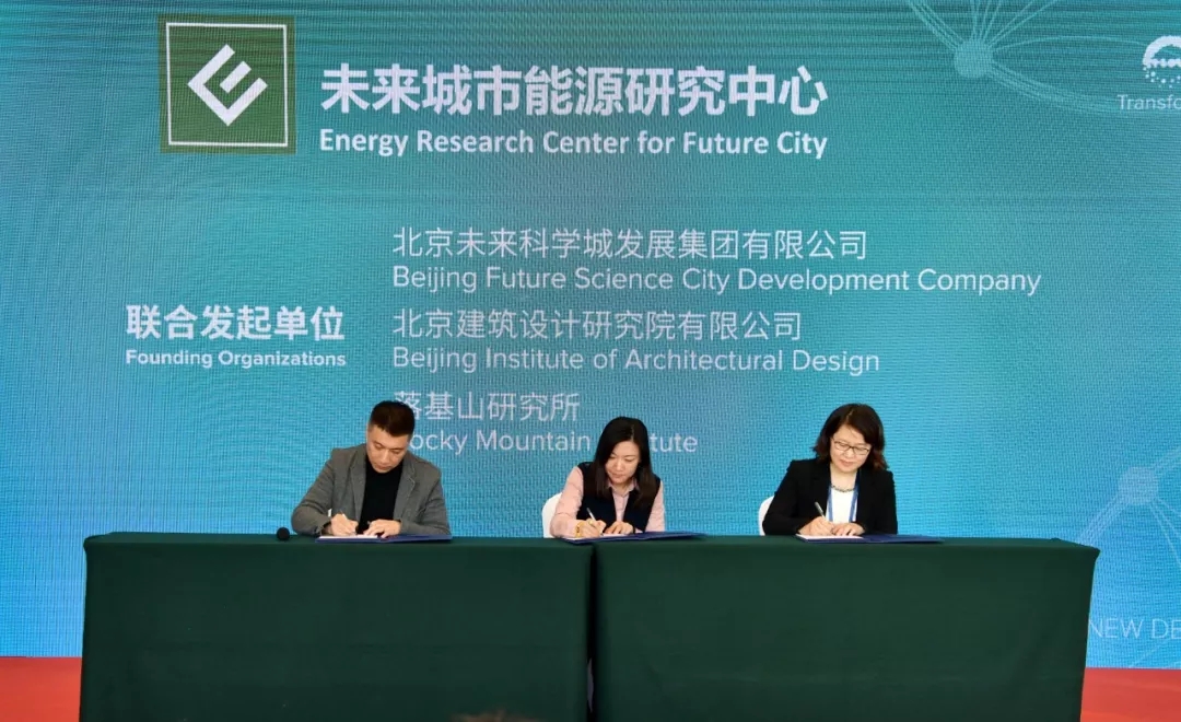 北京建院信息部部长、数字科技研究院院长林卫主持未来城市能源研究中心成立仪式,与北京未来科学城发展集团副总经理周榕,落基山研究所常务董事、北京代表处首席代表李婷共同为未来城市能源研究中心揭牌。北京建院、未来城发展公司、落基山研究所三家单位签署战略合作框架协议。