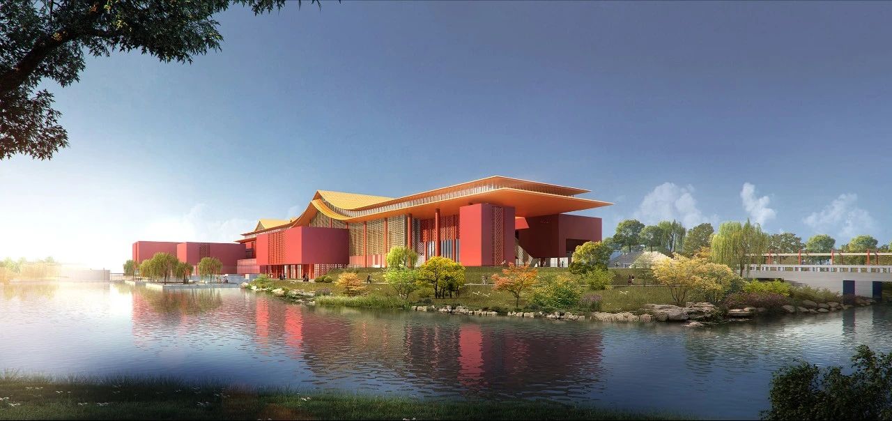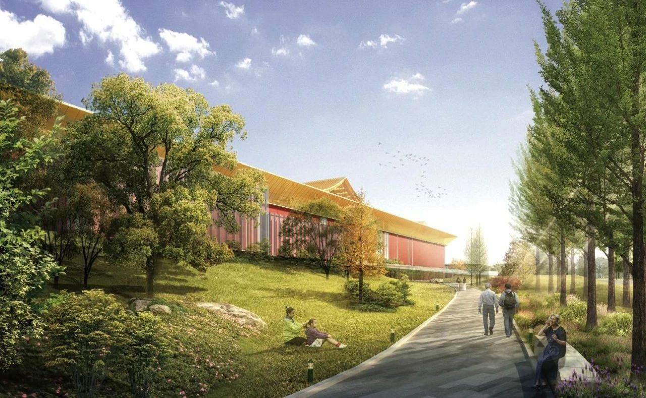 从效果图上看,南侧临水、北面叠山的故宫博物院北院区,在建筑上就很有传统文化风韵,灰色外城、红色内墙和金色的重檐,让人一眼就能联想到故宫,东西向的轴线设计也充满了秩序感。