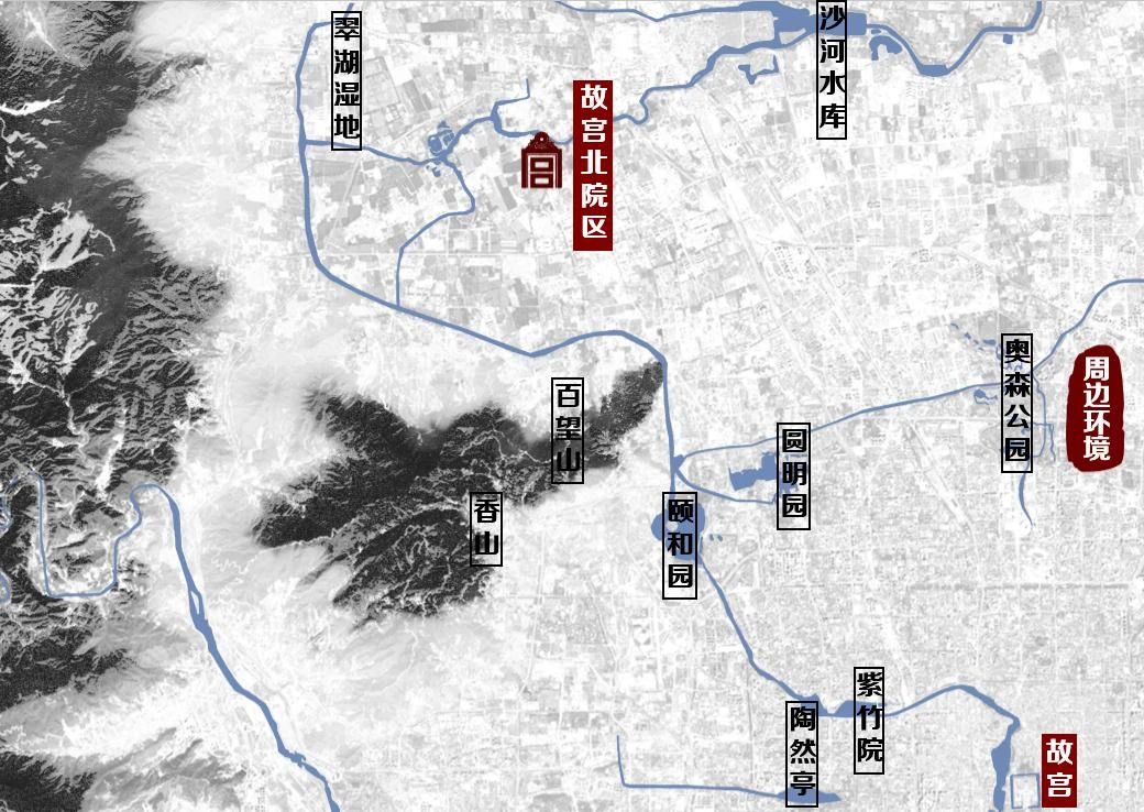 从地理位置上看,故宫博物院北院区建设地点位于海淀区西北旺镇西玉河村范围内,是“平安故宫”工程的核心组成部分。项目总用地面积62.01公顷,总建筑面积10.2万平方米,建设内容包括文物展厅35000平方米、文物修护用房20000平方米、文物库房23000平方米、数字故宫文化传播用房9500平方米、观众服务用房2500平方米、综合配套设施用房12000平方米等。