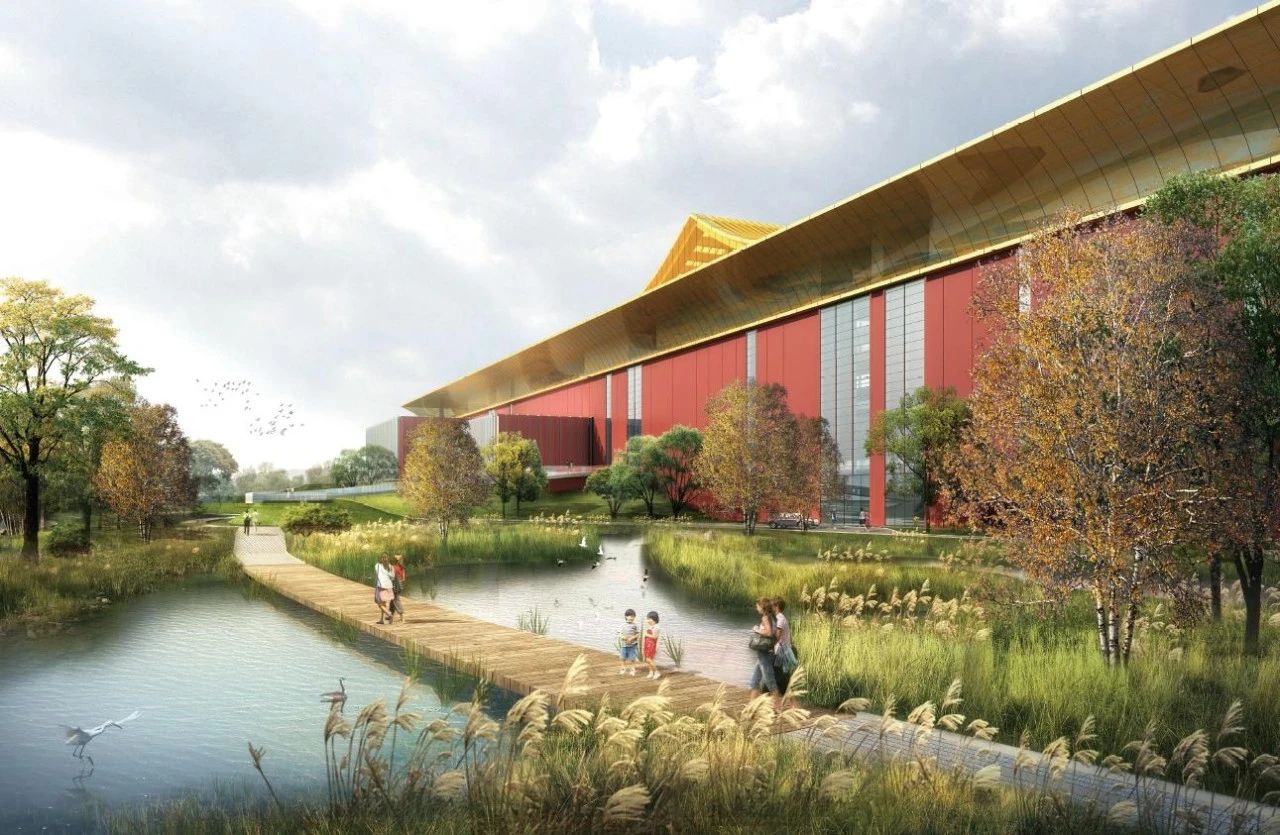 张宇介绍,北院区处于水面与林木环绕之中,地理条件极佳。而这种水面与林木环抱的原生地理条件,使得北院区的设计有机会打破传统城市博物馆封闭内向的空间特质,将园林纳为展览的一部分,让观众能在人文与自然中移步换景,获得充分与环境对话的机会。