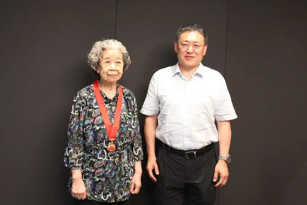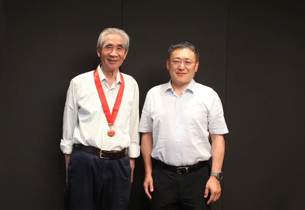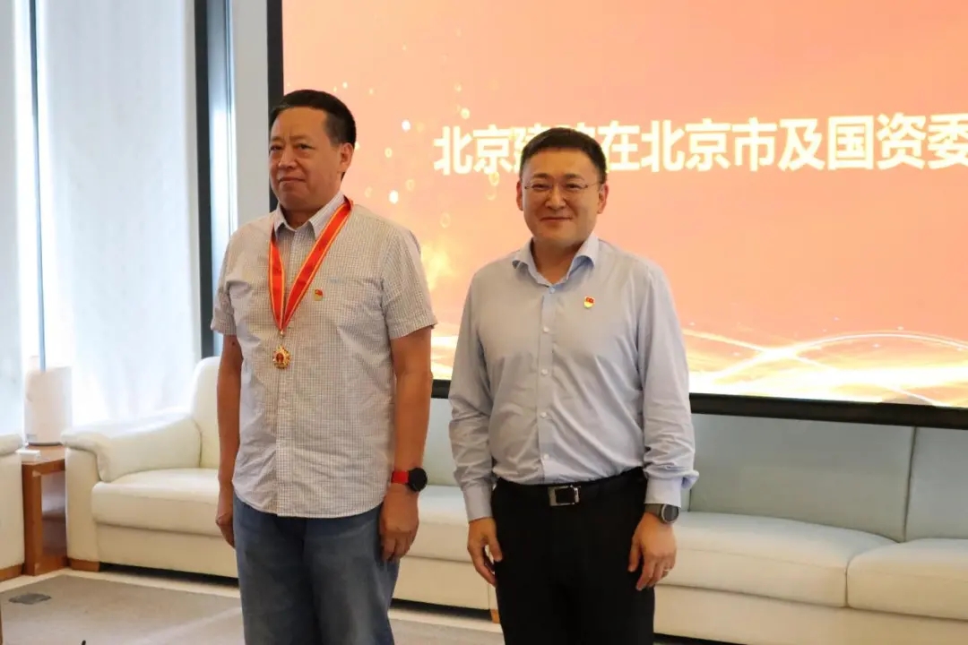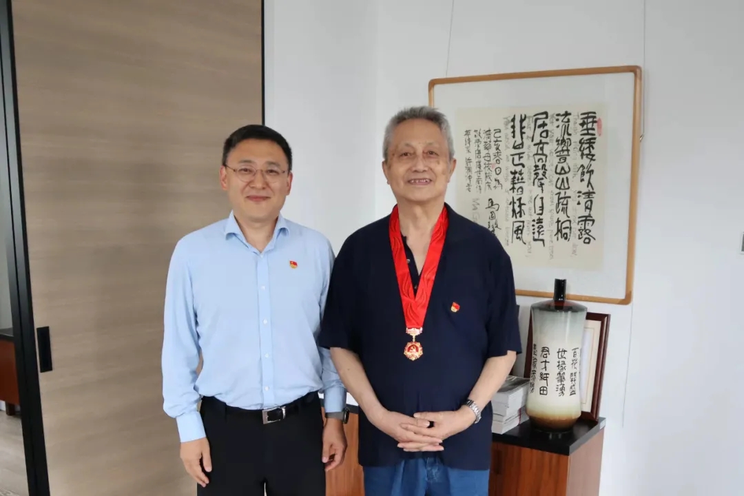 北京建院党委书记、董事长徐全胜和公司党委副书记、总经理张宇为获得荣誉的老党员代表颁发奖章,并向老党员为祖国建设和建院发展作出的贡献致以崇高敬意!