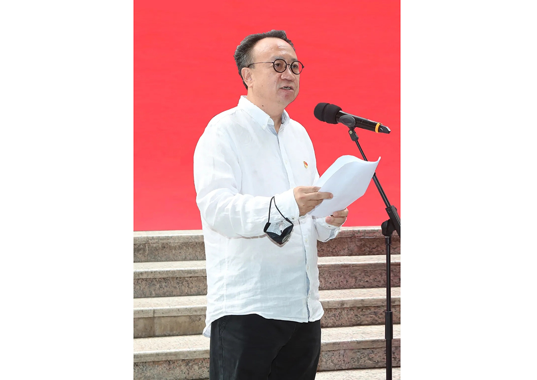 6月29日上午,在北京建院合唱队悠扬的歌声中,庆祝中国共产党成立100周年——北京建院“百年筑梦路,永远跟党走”主题展正式开幕。北京建院党委书记、董事长徐全胜,党委副书记、总经理张宇,纪委书记、监察专员郭少良,副总经理李中国,副总经理郑琪,各党总支、直属党支部书记,以及2021年新入党党员和部分职工代表参加了开幕式。开幕式由北京建院党委副书记、总经理张宇主持。