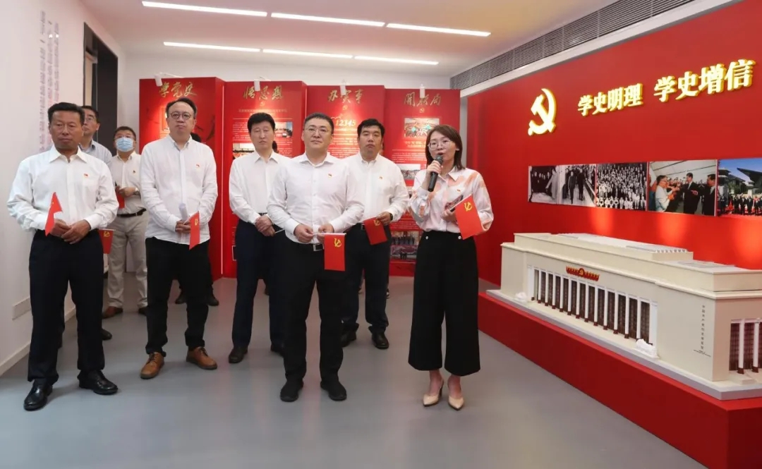 公司领导、全体人员集体合唱歌曲《没有共产党就没有新中国》,共同感悟“历史的选择、人民的选择”。在“祝中国共产党百岁生日快乐”的祝福声中,展览正式拉开帷幕!
