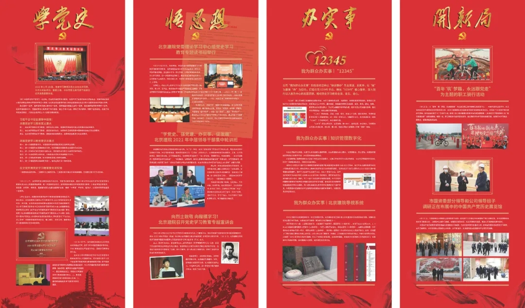 北京建院党委副书记、总经理、全国工程勘察设计大师张宇亲自主持展览策划,旨在展现北京建院积极推动习近平总书记重要指示批示和党中央重大决策部署落地工作的开展,通过营造团结奋进、积极进取、开创新局的浓厚氛围,使广大党员群众在历史中感悟革命荣光,在与时代共命运中追寻精神动力,在奋进征程中传承“红色基因”,做到学史明理、学史增信、学史崇德、学史力行,努力把北京建院建设为国际一流的建筑设计科创企业,为实现中华民族伟大复兴的中国梦作出更大贡献。