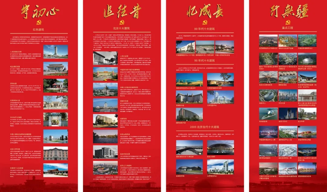 此次展览内容紧扣“百年筑梦路,永远跟党走”主题,分为“党旗飘扬”、“红色基因”、“砥砺前行”三个部分,精选了大量的图片和视频资料,生动地再现了一代代北京建院人始终胸怀中华民族伟大复兴梦想,不惧挑战、锐意创新,在服务国家战略和首都城市发展中贡献了无愧于时代的建筑作品。与共和国同龄、为建设新中国首都而生的北京建院始终传承红色基因,用党的奋斗历程和伟大成就鼓舞斗志、明确方向,用党的光荣传统和优良作风坚定信念、凝聚力量,用党的实践创造和历史经验启迪智慧、砥砺品格。