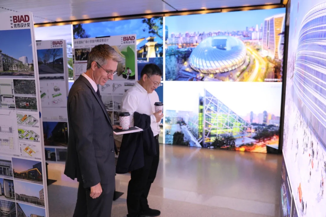 随后,杜涛一行又来到B座1层展示厅,参观了北京建院近年来的优秀工程,了解了北京建院在建筑规划设计、建筑遗址保护和城市更新领域的成就。