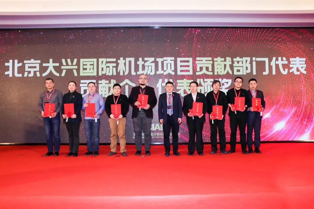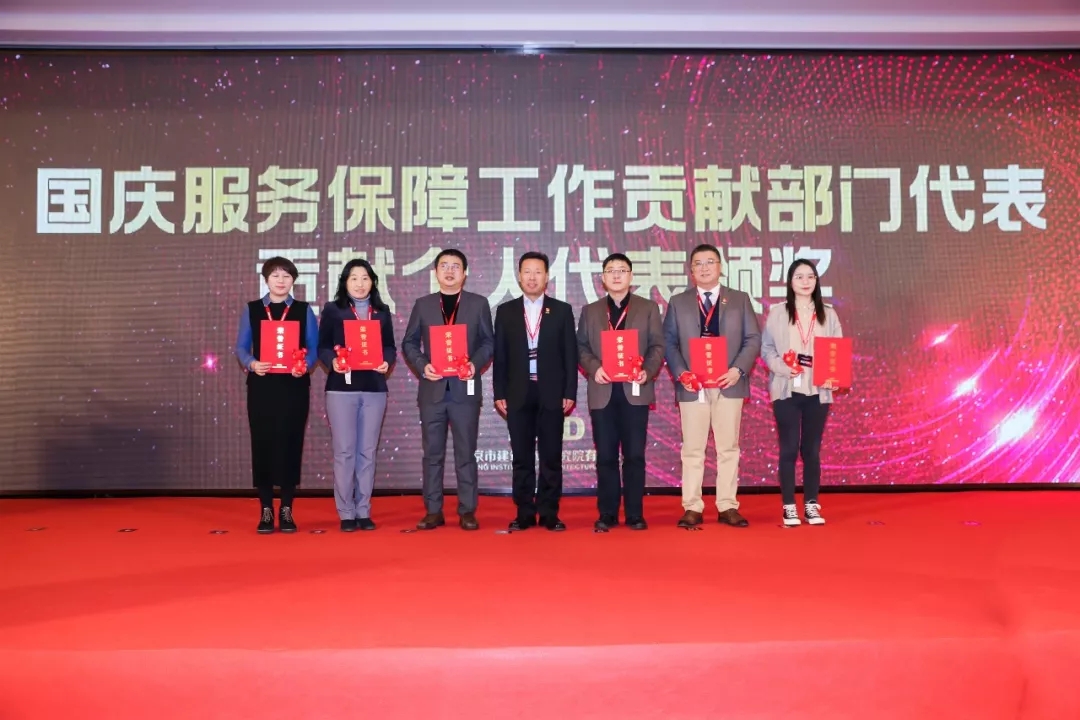 北京建院国庆群众游行活动、国庆服务保障工作、大兴国际机场项目贡献奖获奖部门代表领奖