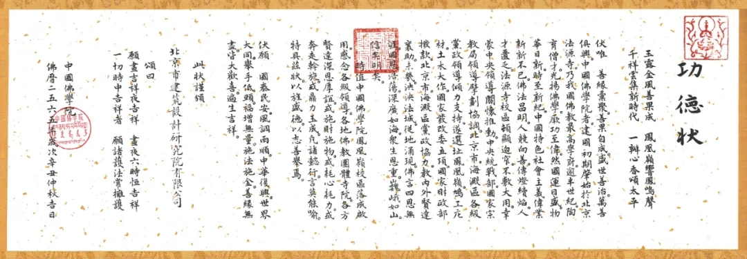 中国佛学院新校区项目的顺利竣工,为北京建院在教育建筑、宗教建筑以及中国传统古建建筑方面的业绩增添了浓重一笔。