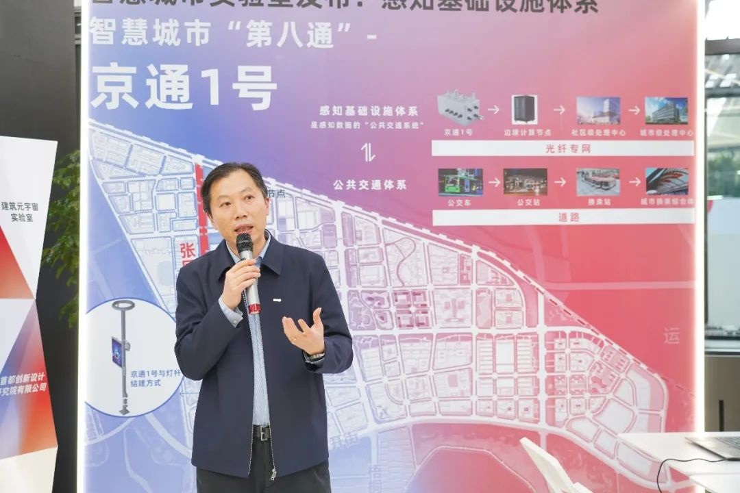 在智慧城市实验室,调研组参观了城市感知基础设施体系及产品“京通1号”。该体系打造了城市感知数据的“公交系统”,其中“京通1号”作为感知设备的“公交车”,基于人工智能算法、国产自主可控芯片和操作系统及可信区块链技术,支持有线无线接入,灵活地与以灯杆为主的城市家具结建,可汇聚城市全域感知数据,形成智慧城市数字和技术底座,使复杂的智能化城市资源管理系统更加易于配置和管理,实现了智能交通、智慧规划、智能能源、智慧社区等各个垂直应用场景用户按需定制,也能有效推动物联产业的蓬勃发展。