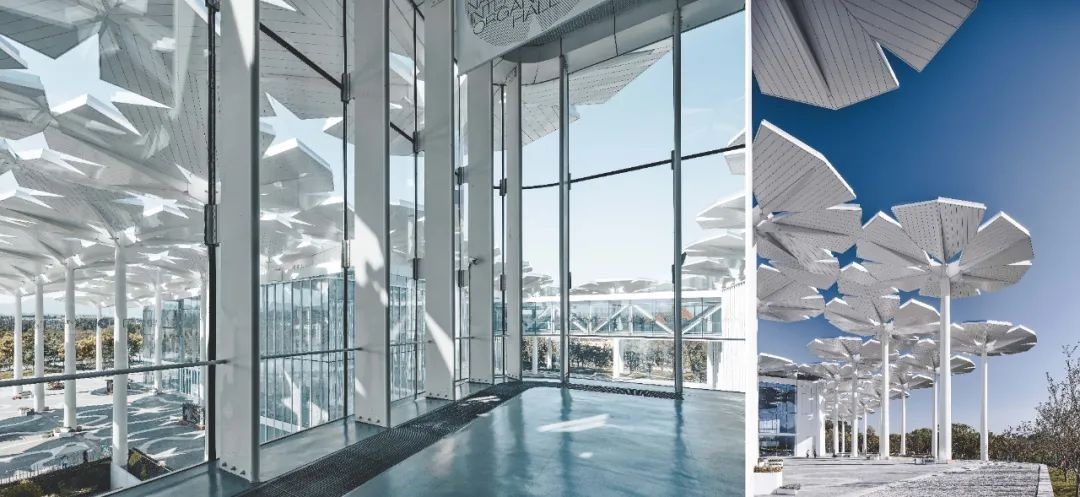 2019中国北京世界园艺博览会国际馆坐落在北京西北延庆区的妫水河畔,在2019年4月至10月的中国北京世界园艺博览会上作为国际范围内参展的国家、地区和园艺组织的室内展场,以及举办国际园艺竞赛的场地。设计以“花伞”为元素、“花海”为主题、“长城灰”为色调,秉承“以人为本”、“绿色节能”、“可持续发展”的设计理念,打造出一座与周边环境和谐共生,既满足展会需求、又满足会后使用的国际馆。